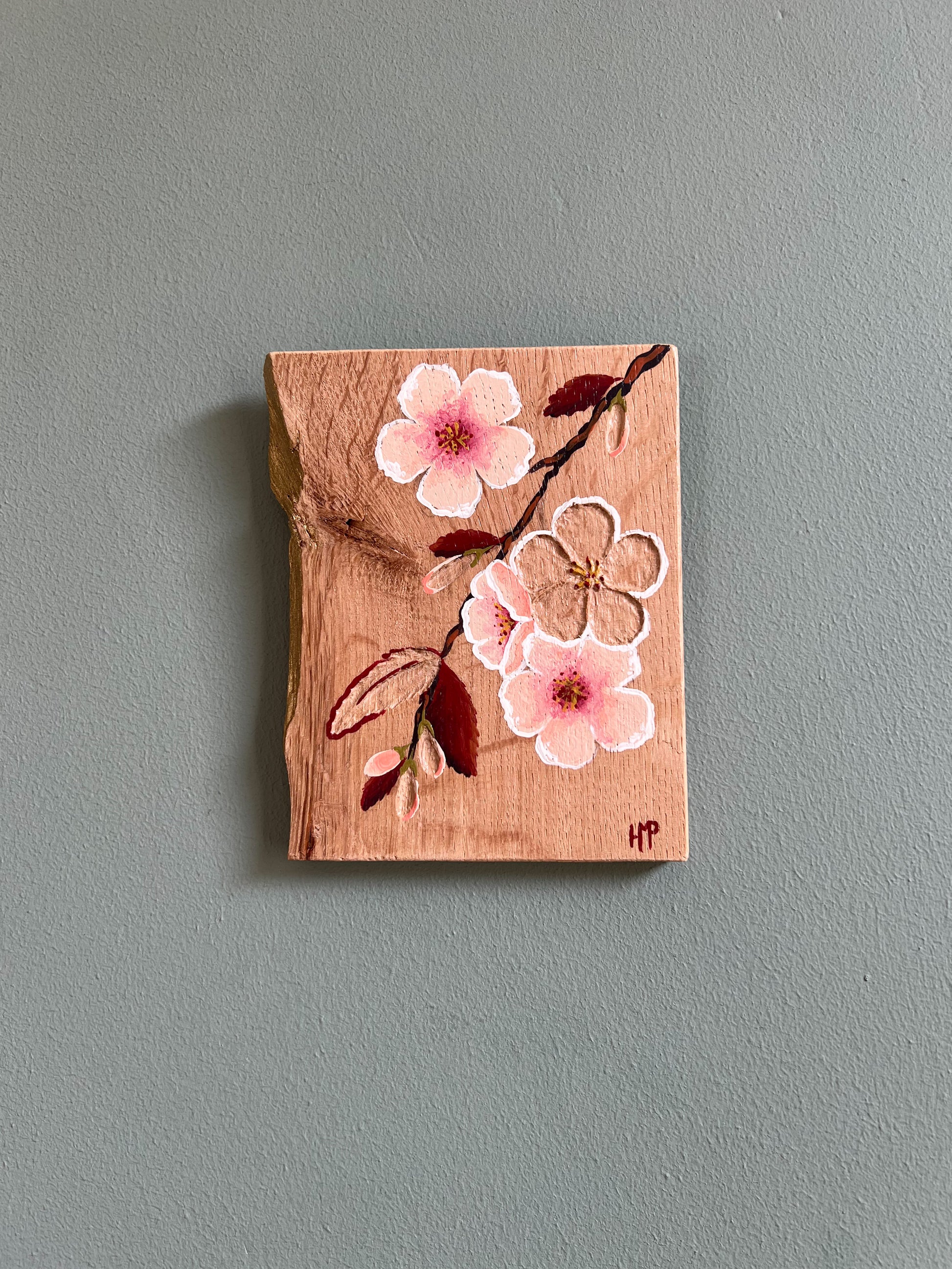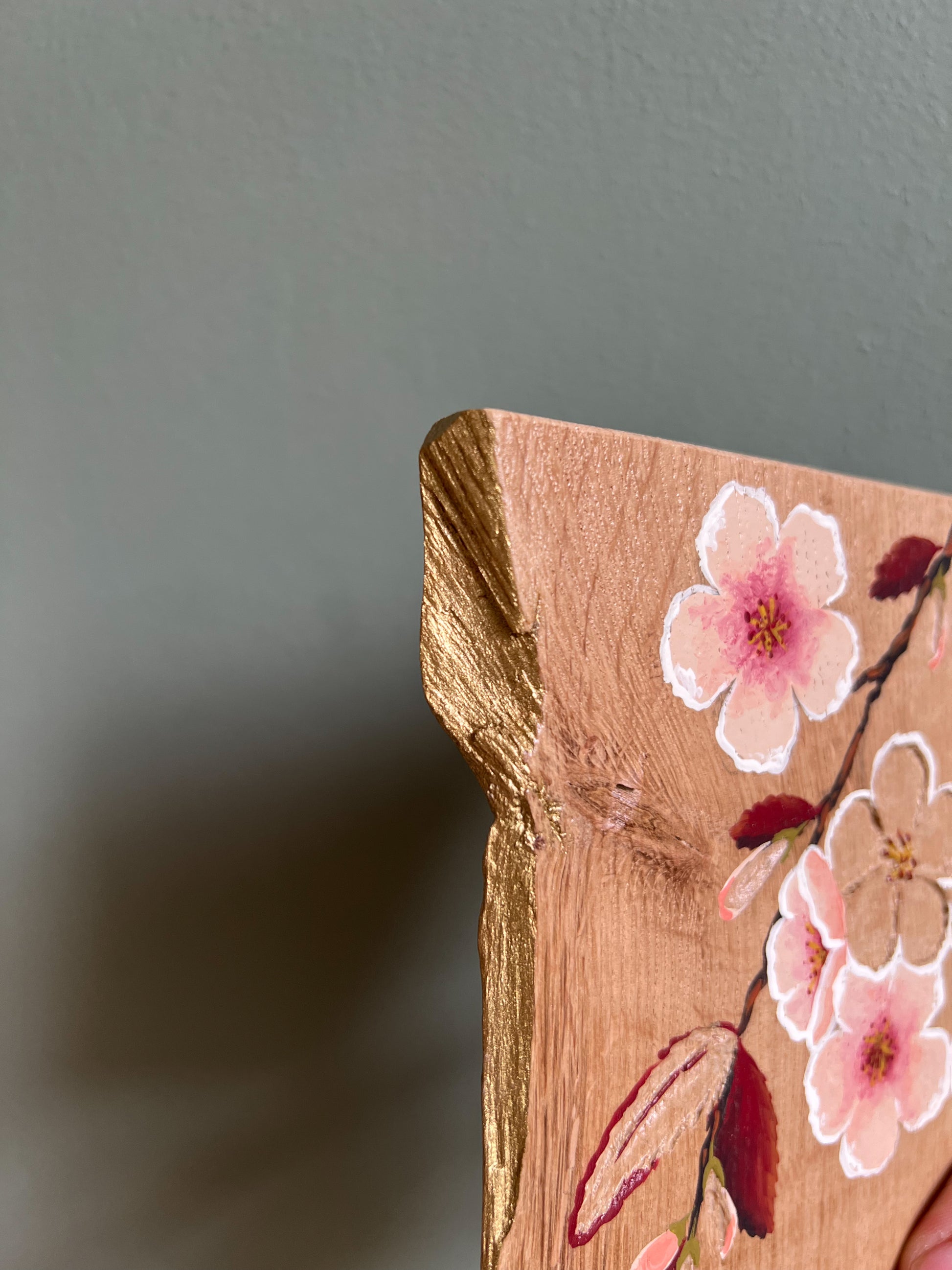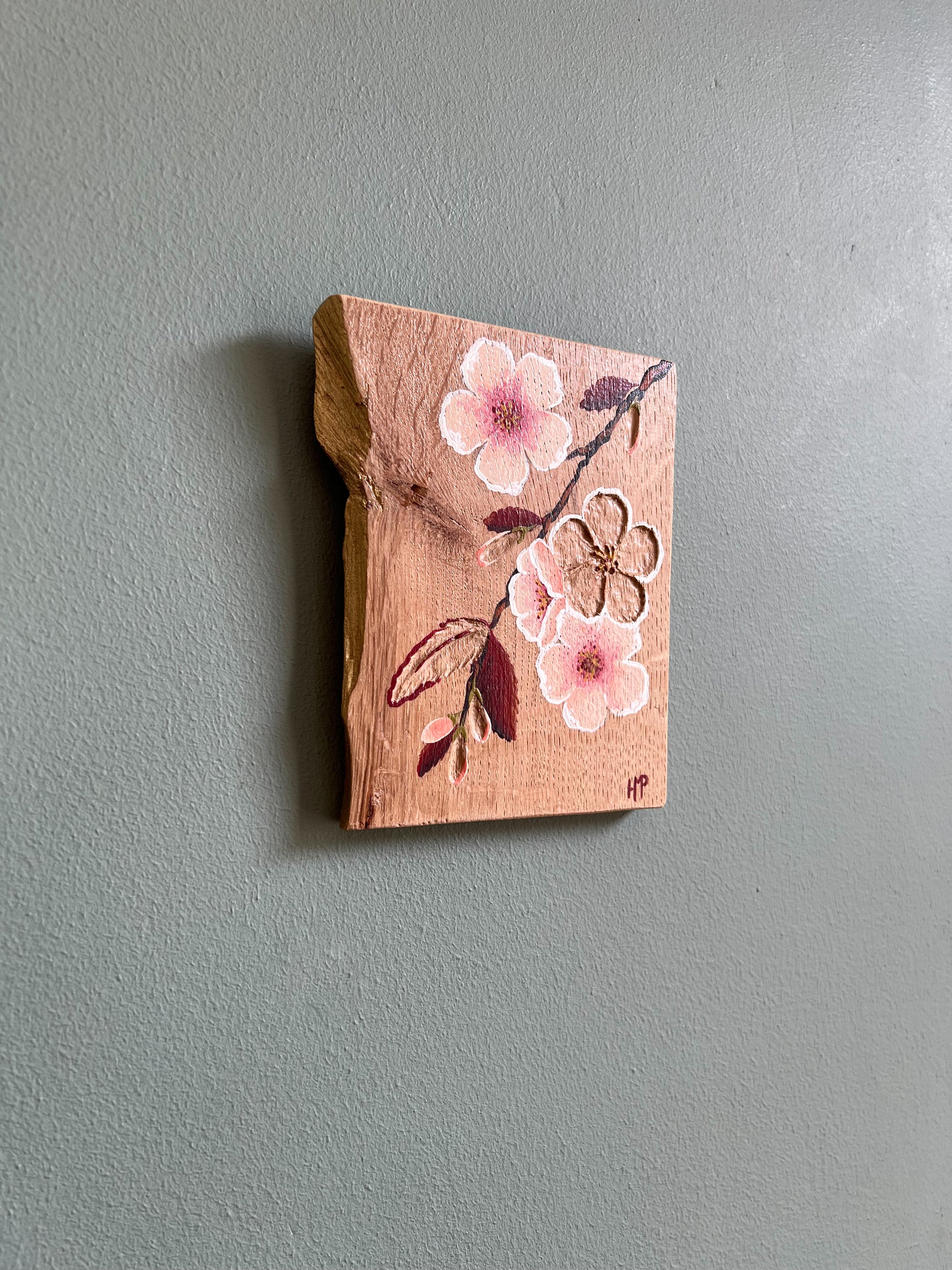 Planche de bois gravée et peinte à la main, motif Sakura.